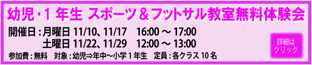 | 11/13 | ○ | × | ○ | ○ | 幼児/小学生個人 | 個人(中学生以上) | × | |||||||