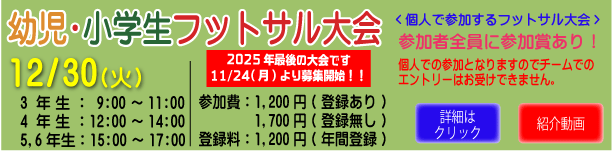 | 11/25 | - | × | ○ | ○ | 幼児/小学生個人 | 個人(中学生以上) | × | ○ | ||||||