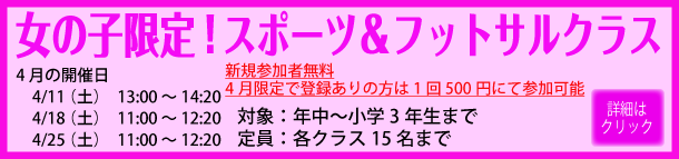 | 4/18 | - | ○ | × | ○ | × | 小学生初心者教室 | フレンドリー | 大会 | ||||||